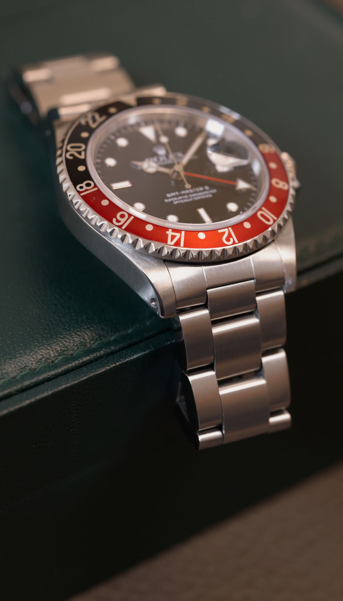 The present example is a GMT Master II ref. 16710 “Coke” from the year 1991 and is accompanied by its original certificate and box.