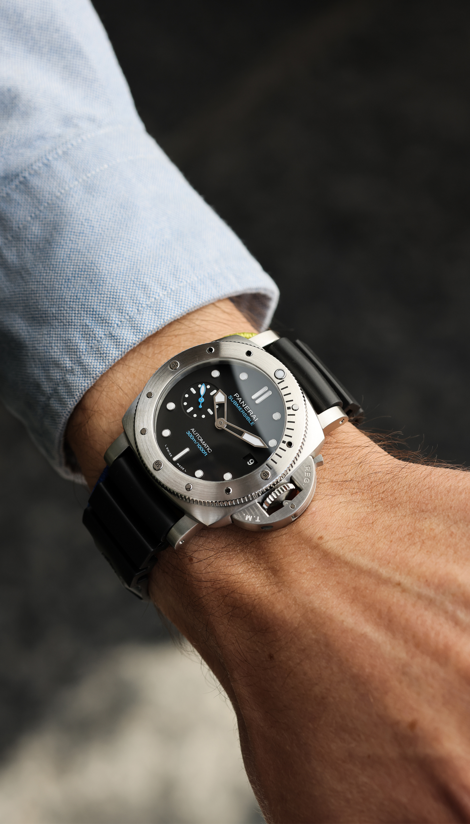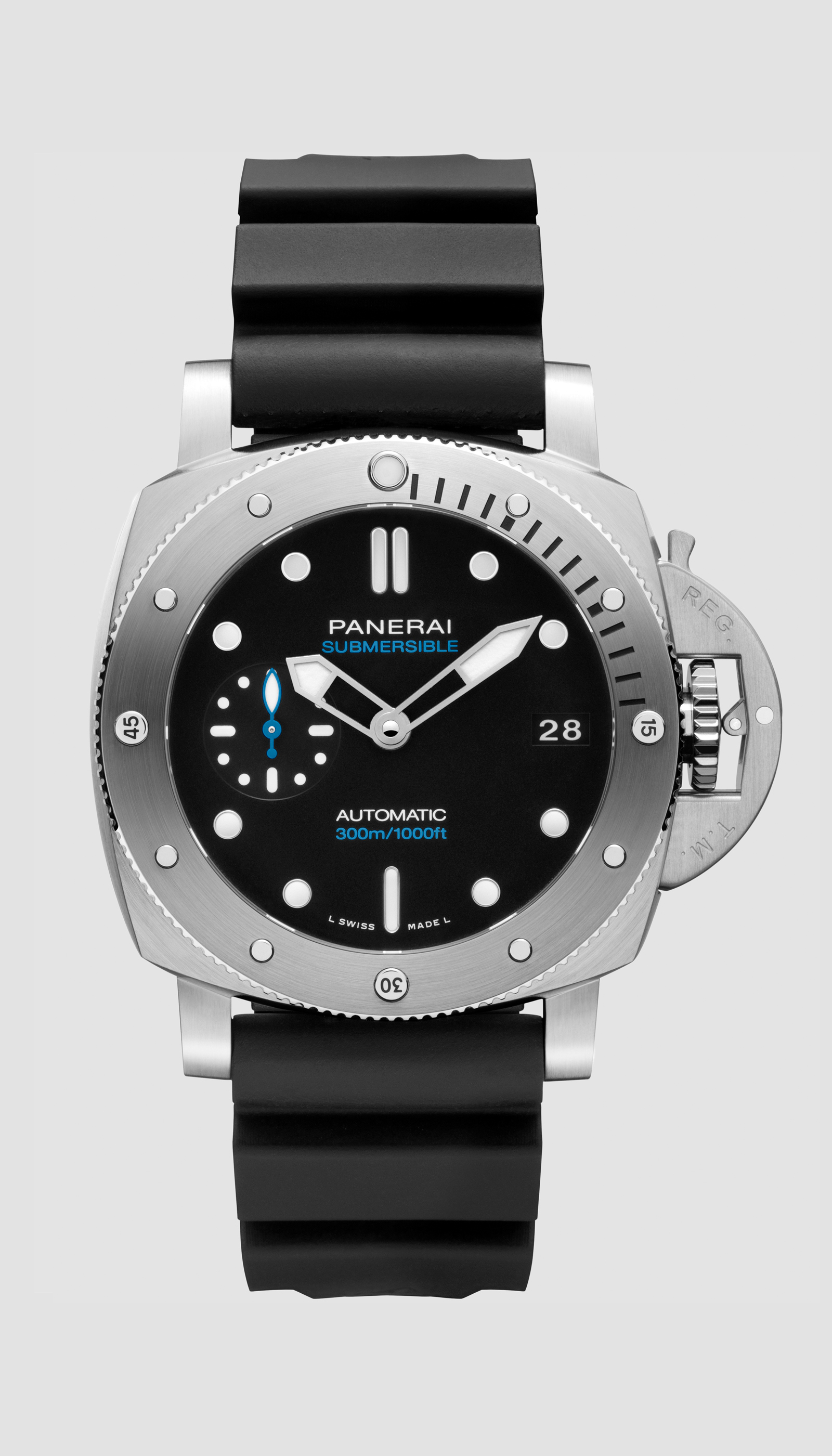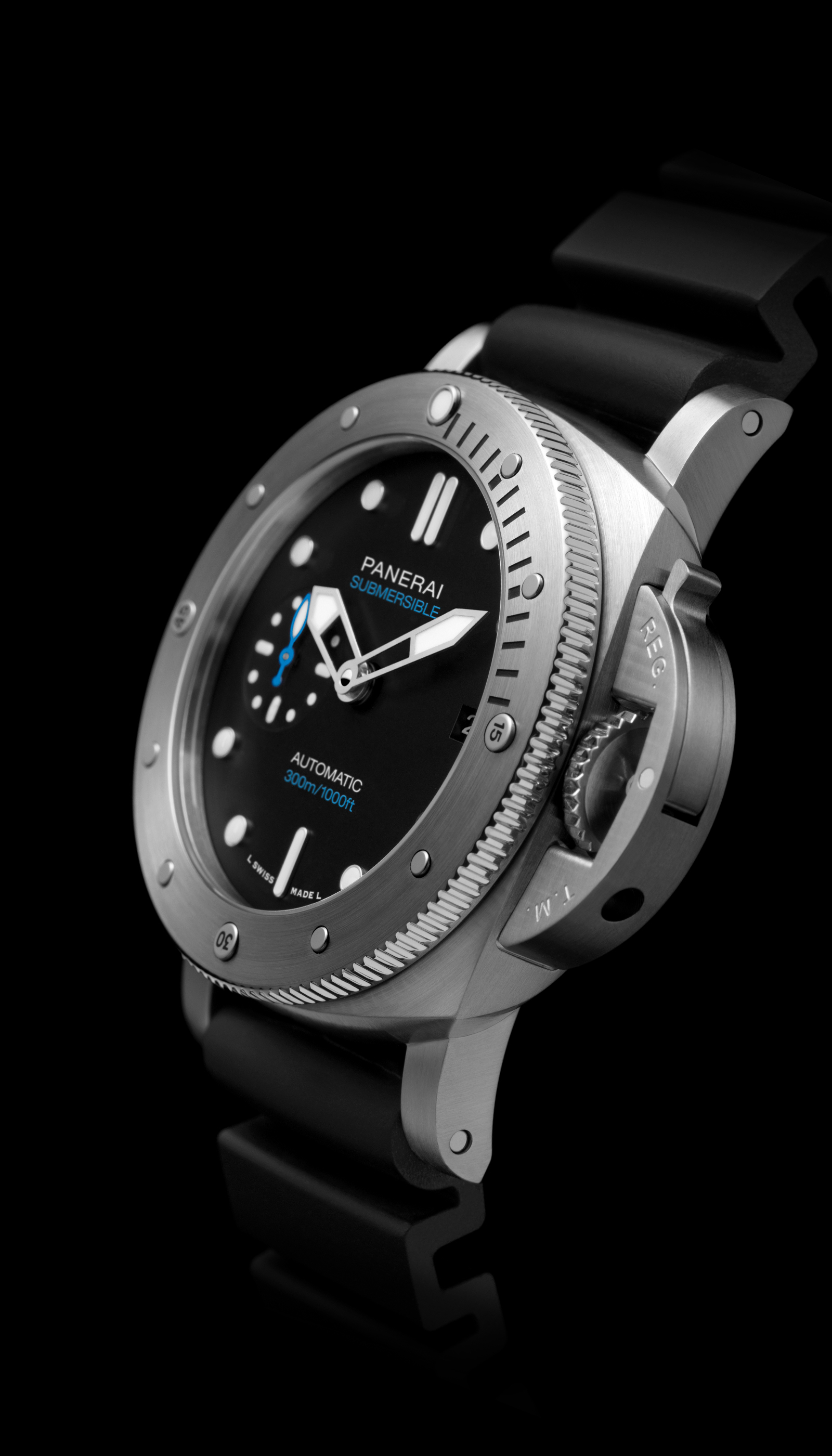 With the Submersible, Panerai renews with its great tradition of epic exploits in the depths of the sea. The design of the bezel is inspired by that of the watch created by Officine Panerai in 1956 for the Egyptian Navy known as “L’Egiziano”. This was an exceptionally large and robust watch with a case diameter of 60 millimeters.