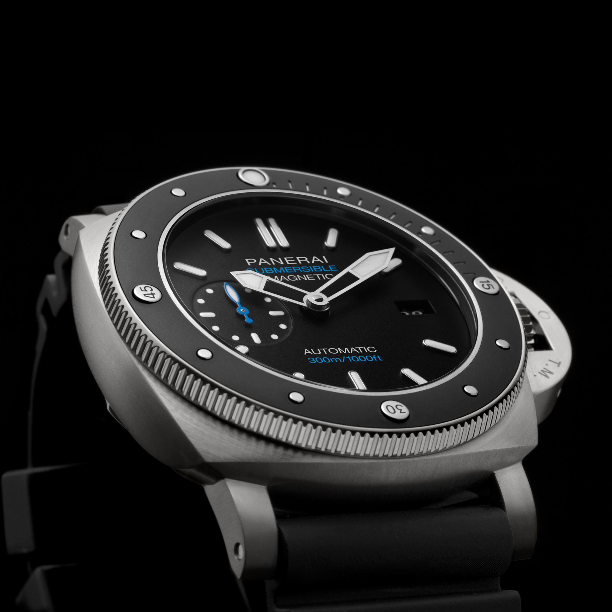 With the Submersible, Panerai renews with its great tradition of epic exploits in the depths of the sea. The design of the bezel is inspired by that of the watch created by Officine Panerai in 1956 for the Egyptian Navy known as “L’Egiziano”. This was an exceptionally large and robust watch with a case diameter of 60 millimeters.